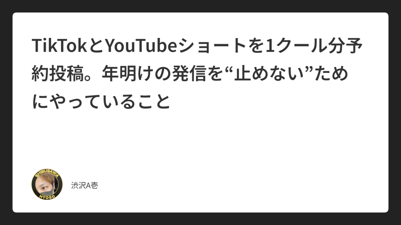 TikTok:ショート動画を 1/11まで予約投稿 YouTubeショート:同じく 1/11まで予約投稿 YouTube(通常動画):1/2まで予約投稿